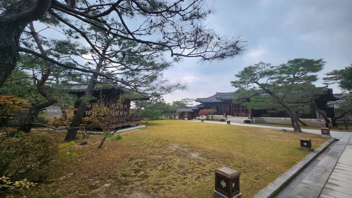 attracted to unavailable people — Black woman standing in Korean garden path, looking back over shoulder